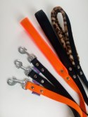 - Smycz wykonana z taśmy polipropylenowej o szerokości 2,5cm oraz długości 160cm z podszyciem polarowym na uchwycie.